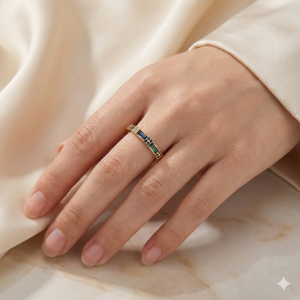 Anel Meia Aliança Cravejado Microzircônia e Zircônia Navete Colorido Folheado A Ouro nº 16