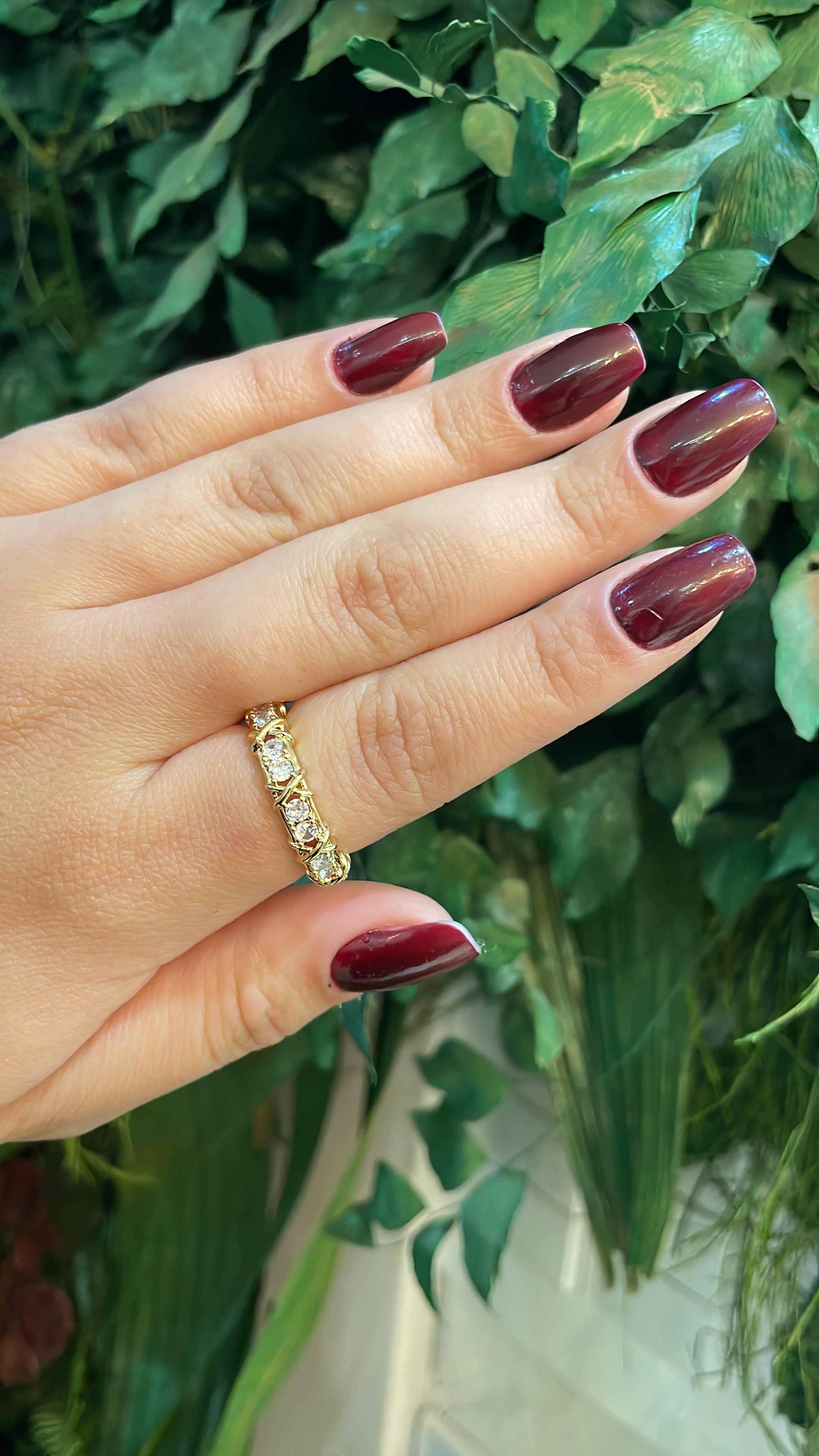 Anel Riviera Twenty-Eight Stones Duo Banho Cravejado Zircônia Folheado A Ouro Ajustável