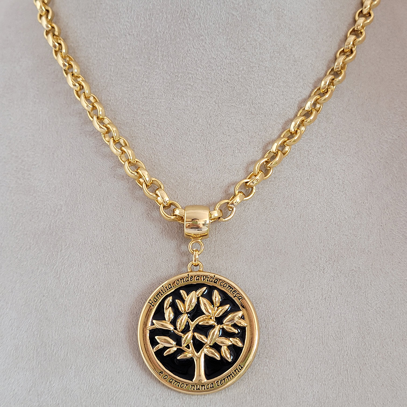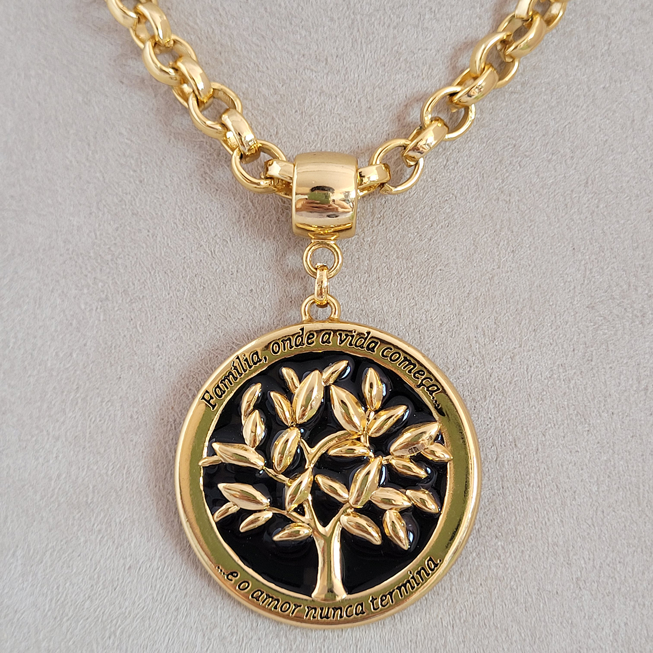 Colar Elo Português Com Pingente Árvore Da Vida Verniz Italiano 45cm + Extensor