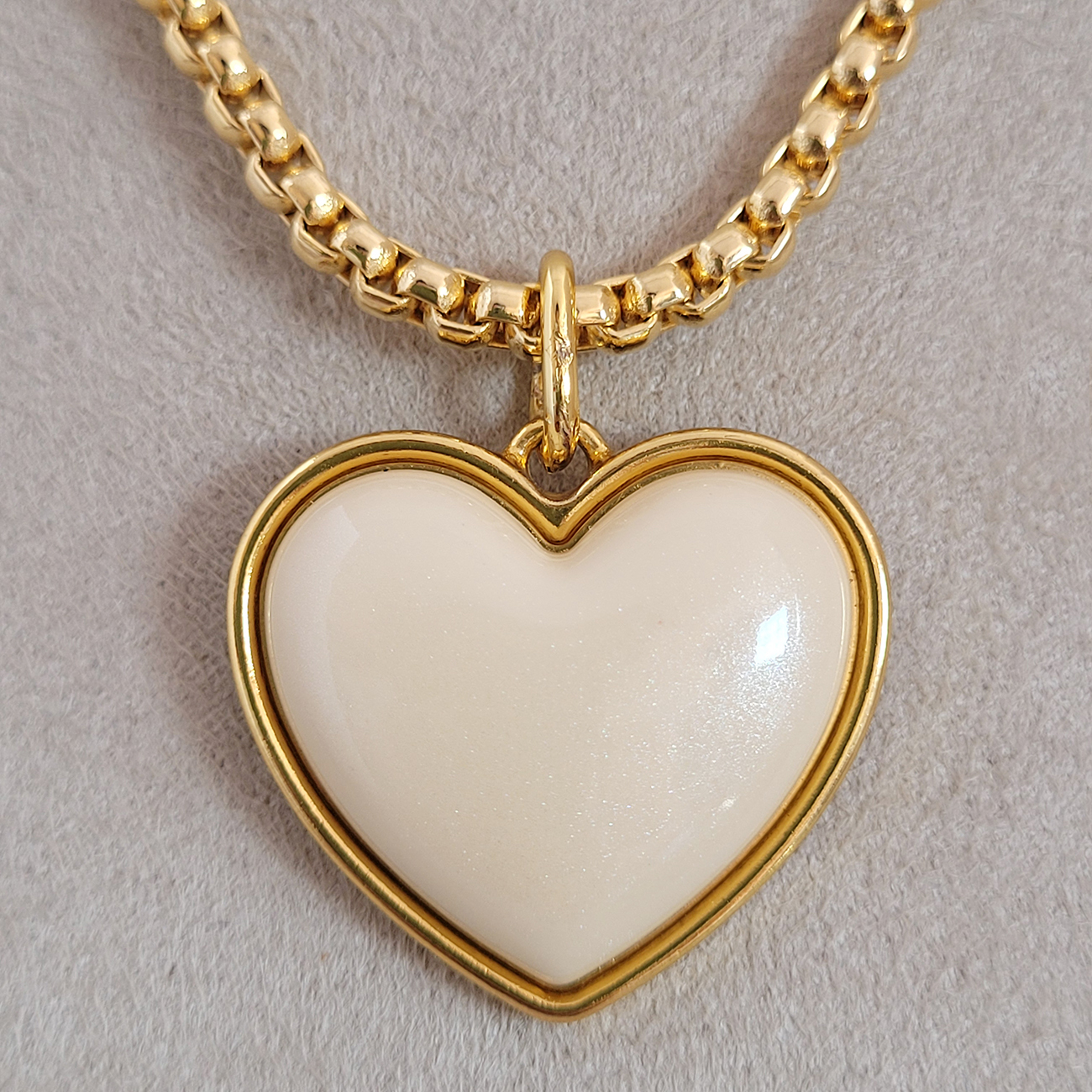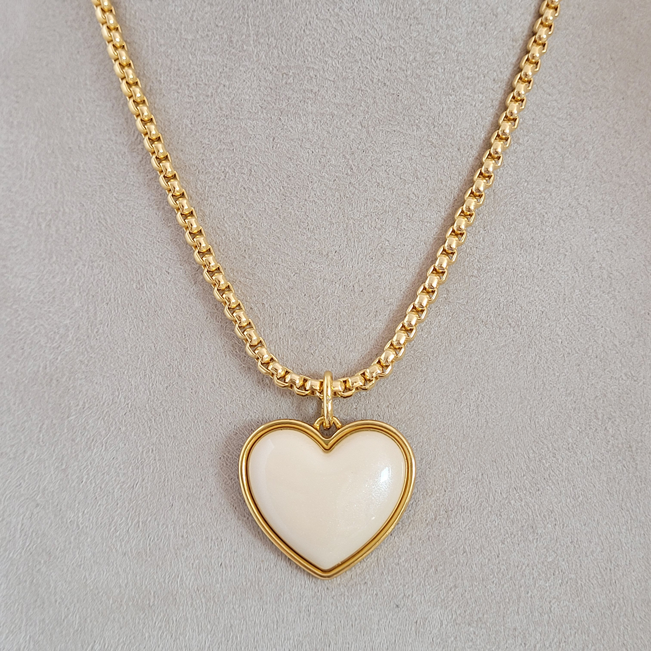 Colar Elo Português Com Pingente Coração Madrepérola Verniz Italiano 30cm + Extensor