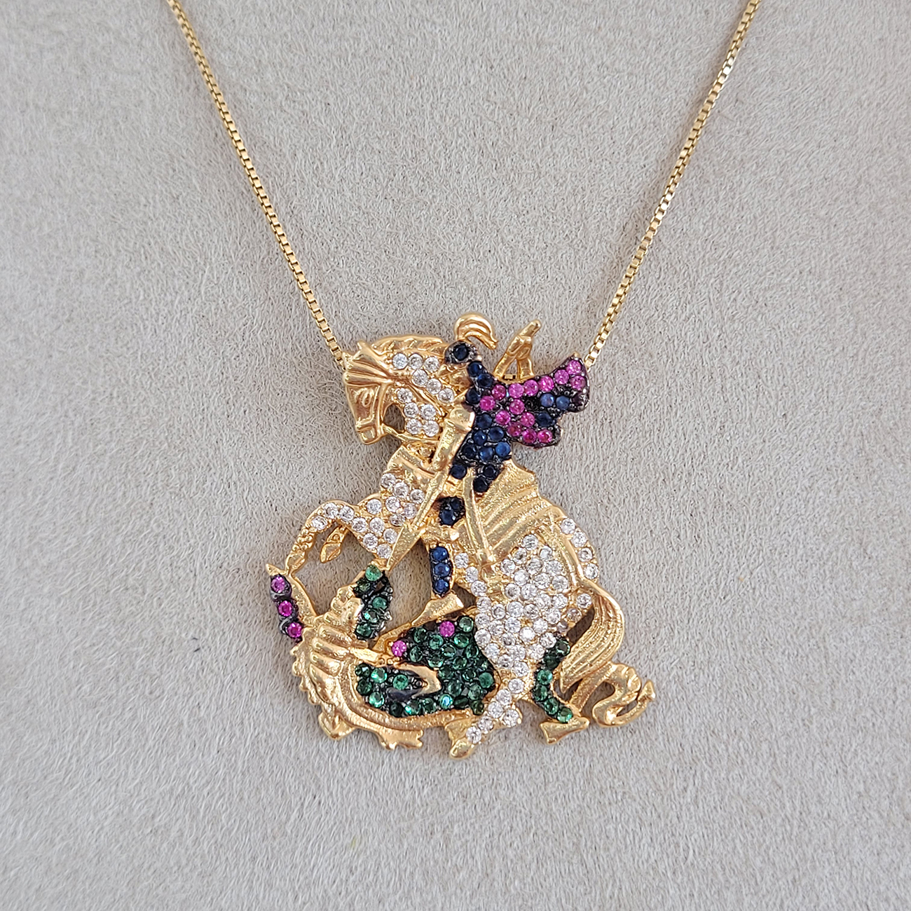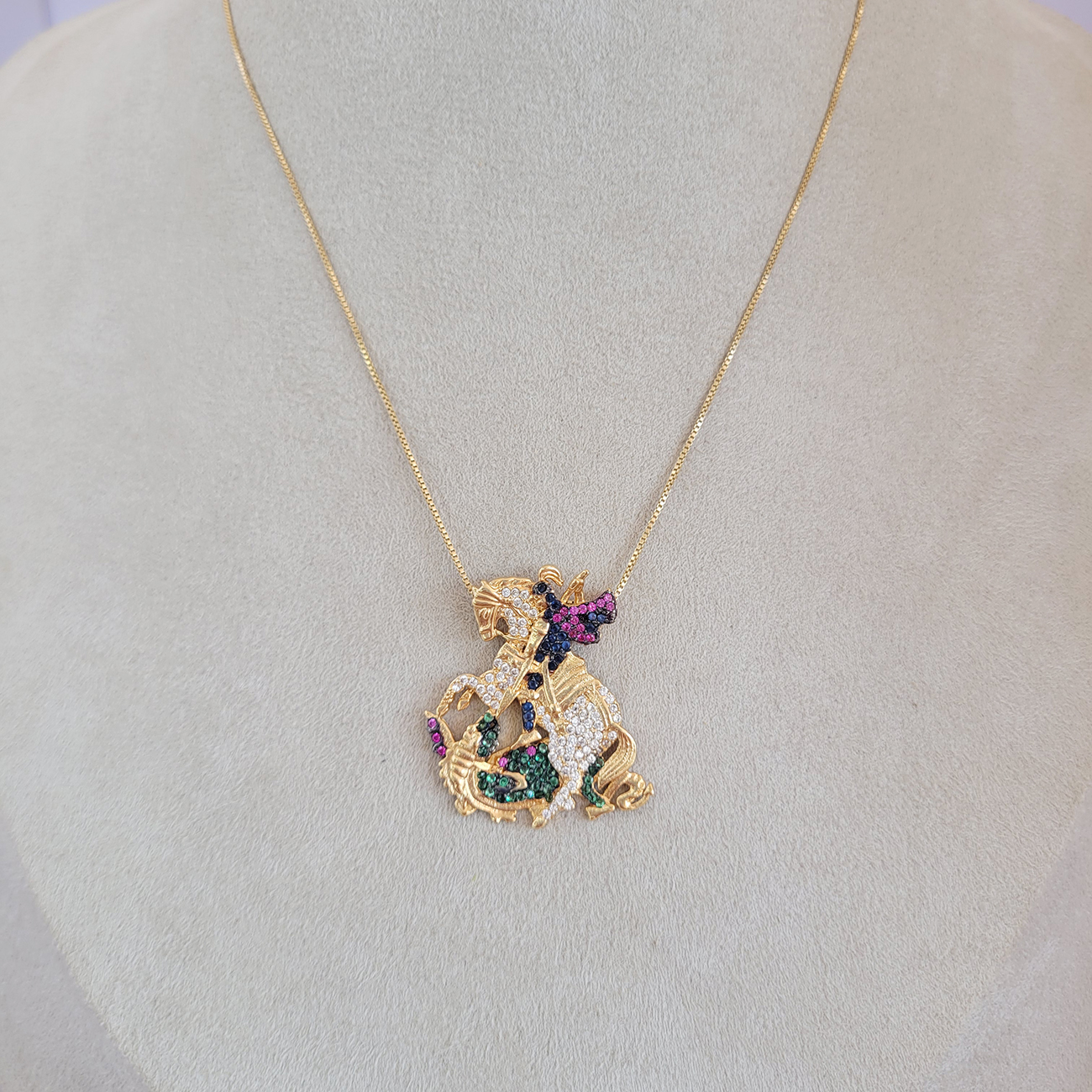 Colar Elo Veneziana Com Pingente São Jorge Cravejado Microzircônias Coloridas 40cm + Extensor