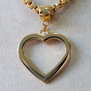 Colar Elo Veneziana Grossa Com Pingente Coração Vazado Verniz Italiano