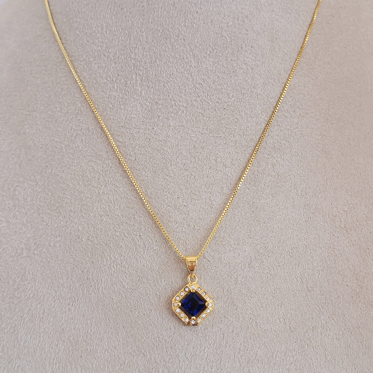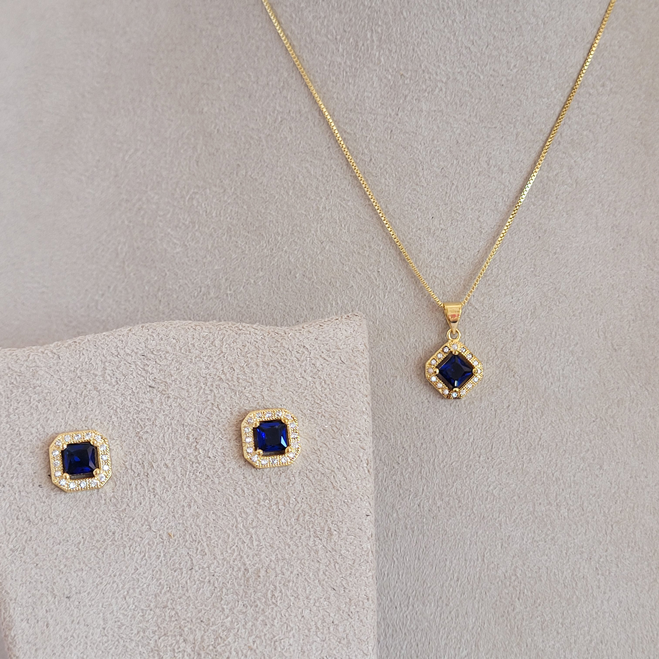 Conjunto Elo Veneziana Zircônia Azul Marinho Cravejado Microzircônia Folheado A Ouro 40cm + Extensor