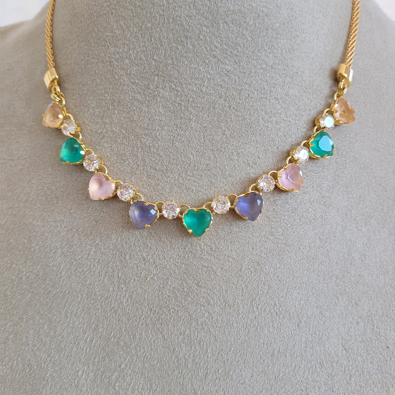 Corrente / Colar Bismark Com Corações Coloridos Com Extensor Verniz Italiano