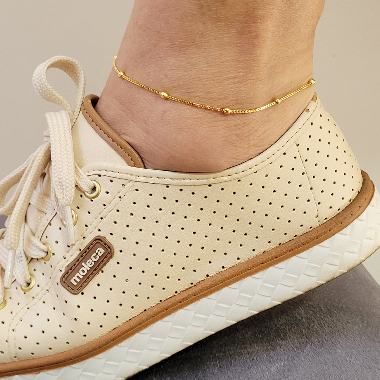 Tornozeleira Elo Veneziana Bolinha Folheada A Ouro 22cm + Extensor