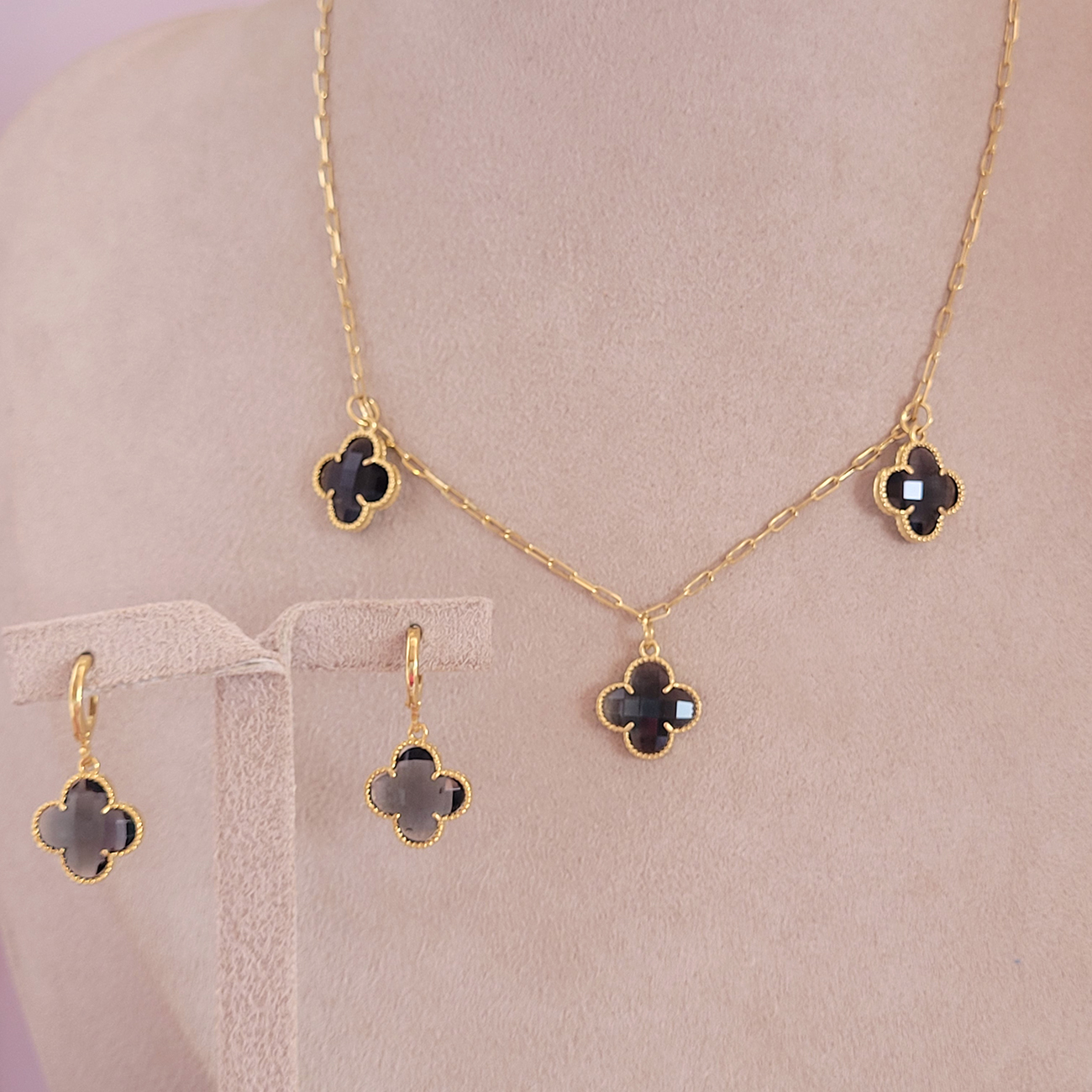 Conjunto Elo Cartie Inspiração Van Cleef Fumê Folheado A Ouro 40cm + Extensor